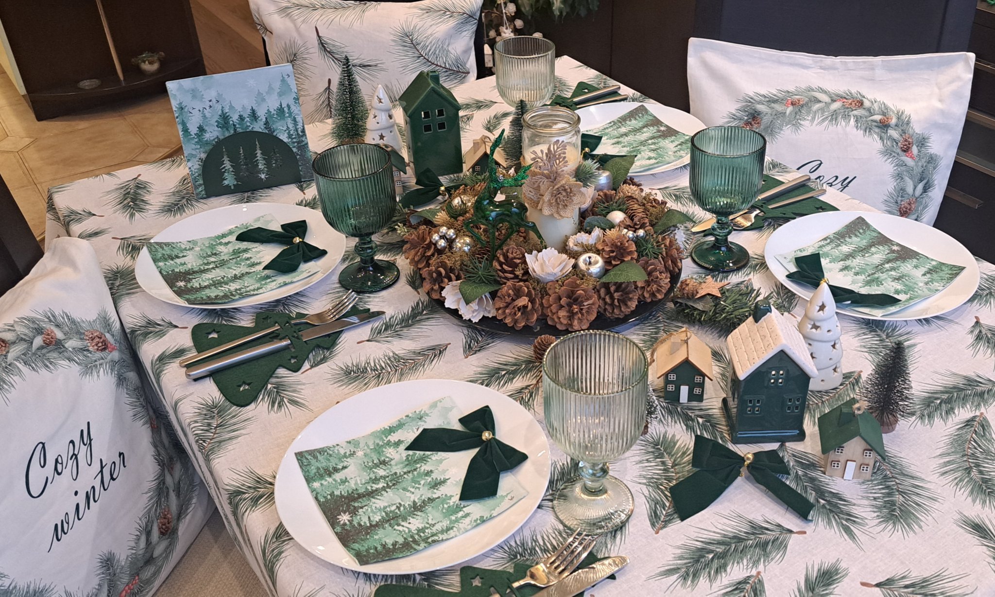 Основата на добре подредена маса е покривката. Тя трябва да е чиста, изгладена и да виси най-малко по 20 см от всяка страна.