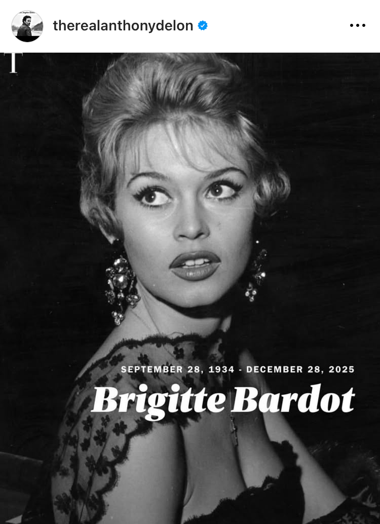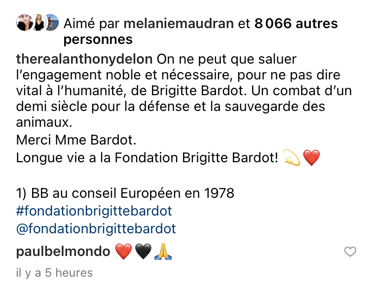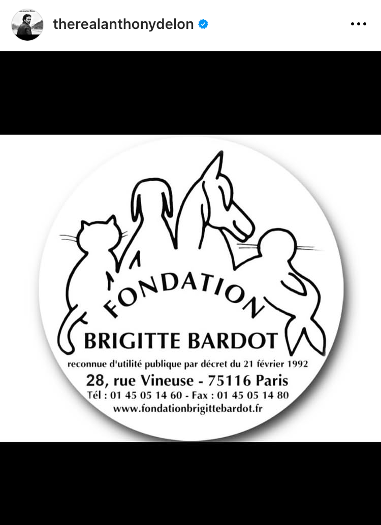 Антъни (Делон) публикува стори по повод кончината на Бардо - става дума единствено и само за Фондацията Брижит Бардо за защита на животните, с пожелания да пребъде и да продължава да прави добро.