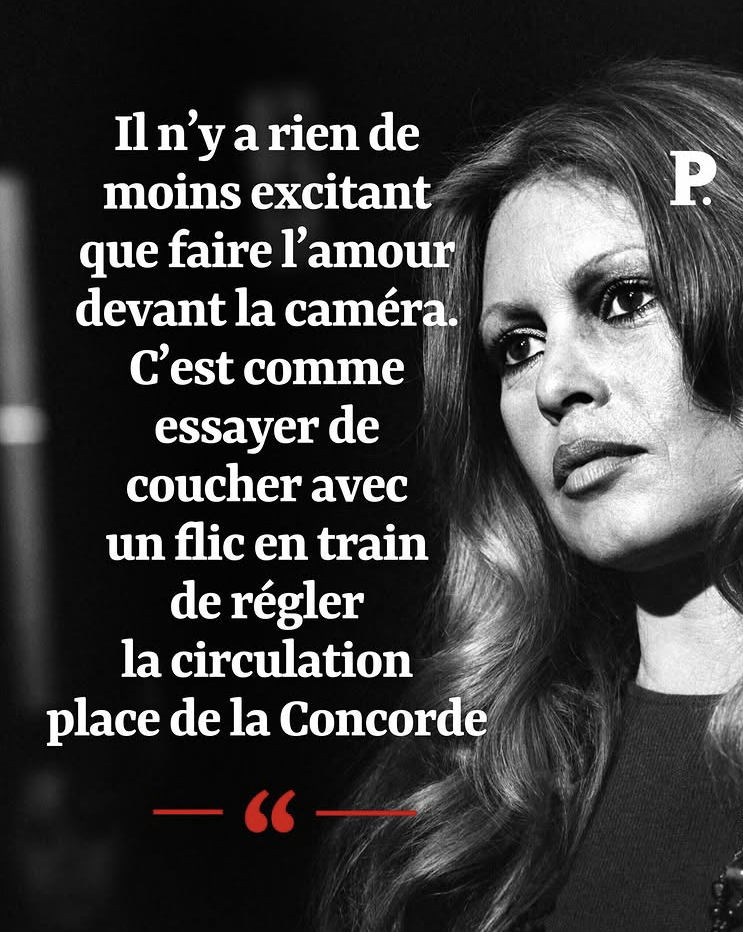 “Нищо не е по-малко вълнуващо от това, да правиш любов пред камера. Все едно да се опиташ да си легнеш с полицай, регулиращ движението Плас де ла Конкорд насред Париж.”