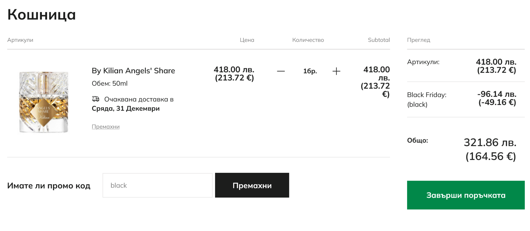 Идеи за подаръци в последния момент с код fragrance + безплатна доставка. Ще кача скрийншот само на първия. Кодът сваля 12лв еднократно, затова, ако ще поръчвате няколко комплекта, по-добре го направете в отделни поръчки.