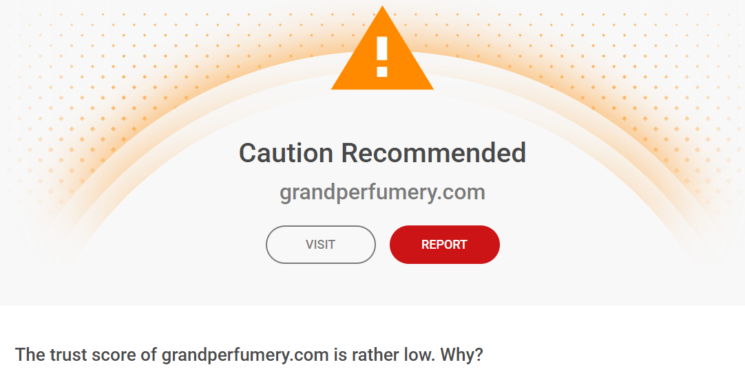 Scamadviser дава лош рейтинг на Grand Perfumery.