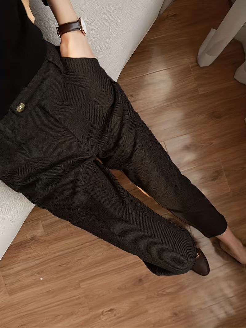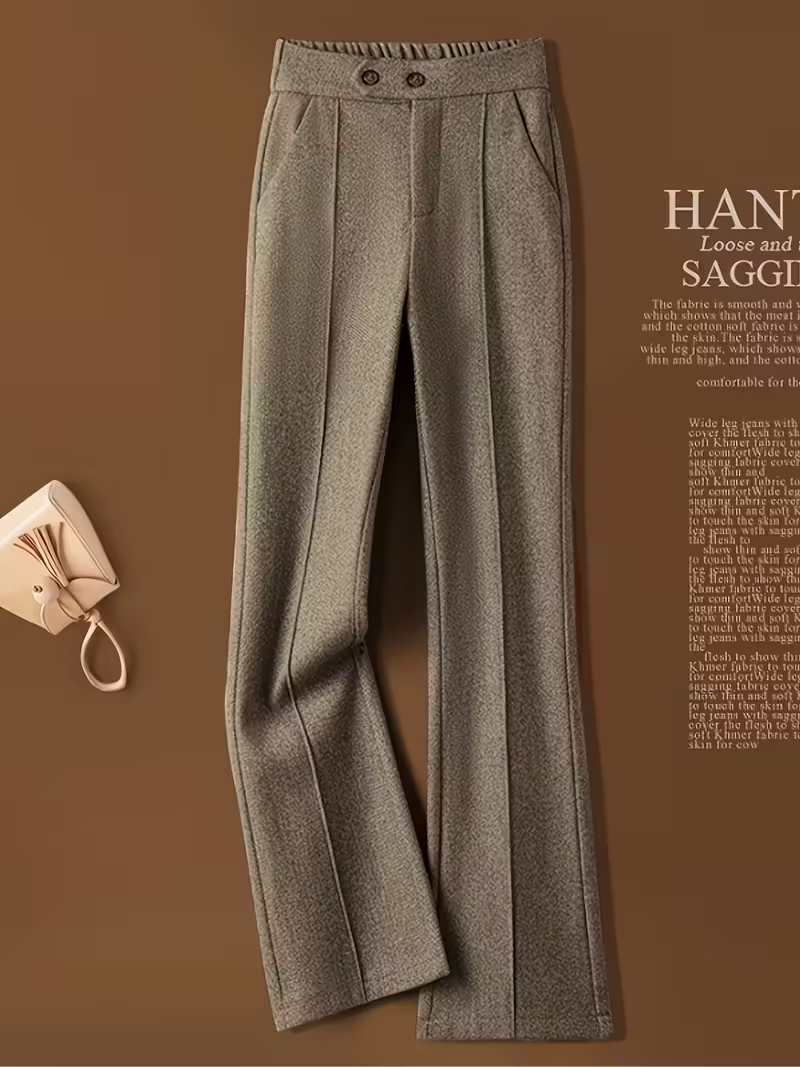 Меки, дебели зимни панталони. Леко клоширани, с ръб, стигат до глезените, но са ми широки на кръста и не съм убедена, че ми харесва как ми седят. Май ще ги върна.