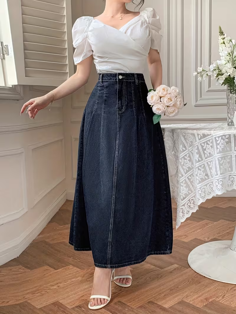 Дънкова пола, много ми харесва и отговаря на размера. ХЛ за 170 см е до глезена. Точно такава търсех.