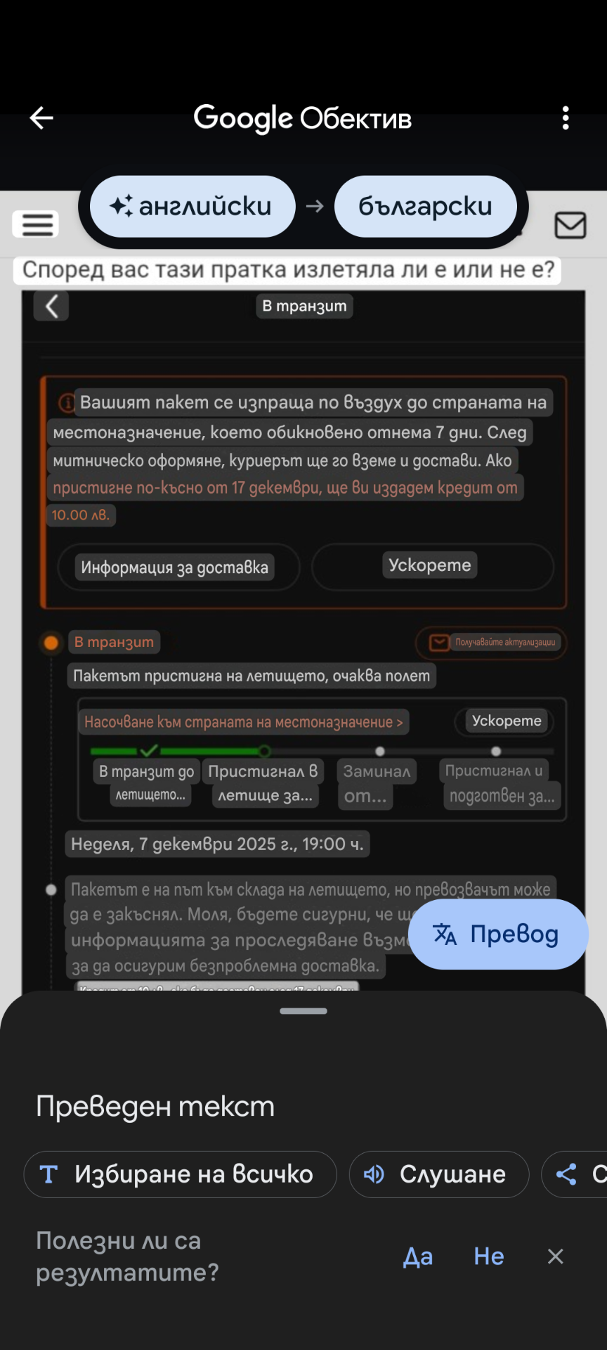 Според вас тази пратка излетяла ли е или не е?