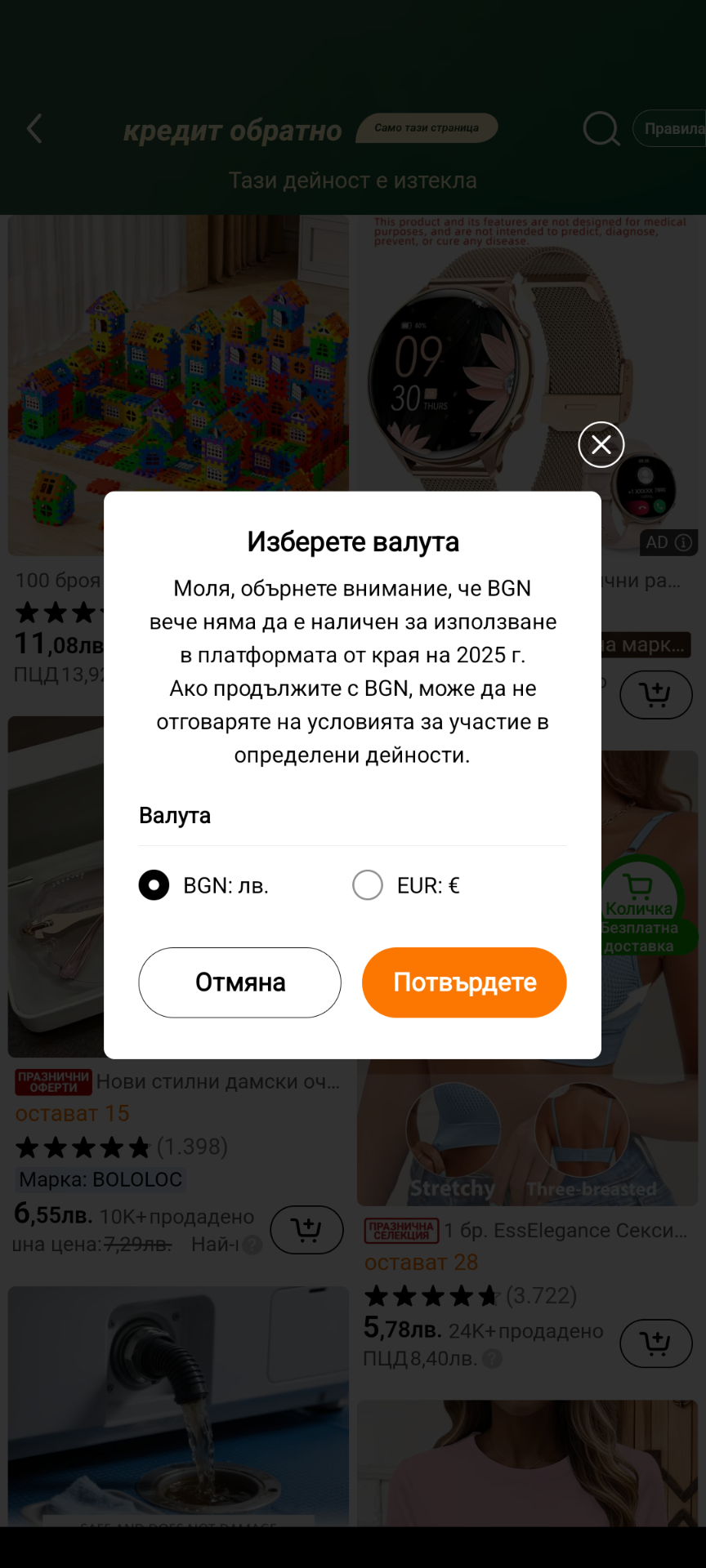 При мене това съобщение се появи, когато бях в левовата версия и написах в търсачката заявете кредит, за да проверя дали я има офертата.
