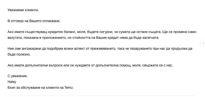 Много благодаря за отговора, но не мисля че ми върши работа. Когато аз  променя валутата от левове в евро парите които имам в левове в евро ги няма. Проблемът не е дали аз искам или не искам да ги преобразувам, а България от първи януари официално приема еврото като собствена валута. Всички институции и банки в България автоматично преобразуват парите на гражданите от левове в евро по фиксинга на Българска народна банка. Говоря и  от името на много ваши клиенти във форуми, ние смятаме че е редно и ТЕМУ да преобразува кредитите на българите от левове в евро на 1 януари 2026 година. Въпросът ми е следния Какво ще се случи с моя кредит в левове когато настъпи новата година и лева вече няма да съществува. Много благодаря за отделеното внимание. Очаквам конкретен отговор.