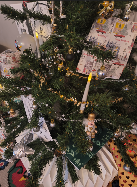 Елхата ни е малка (може би около 1 м) и бялата "поличка" бе седяла по-хубаво на по-висока, но и така не е лошо.