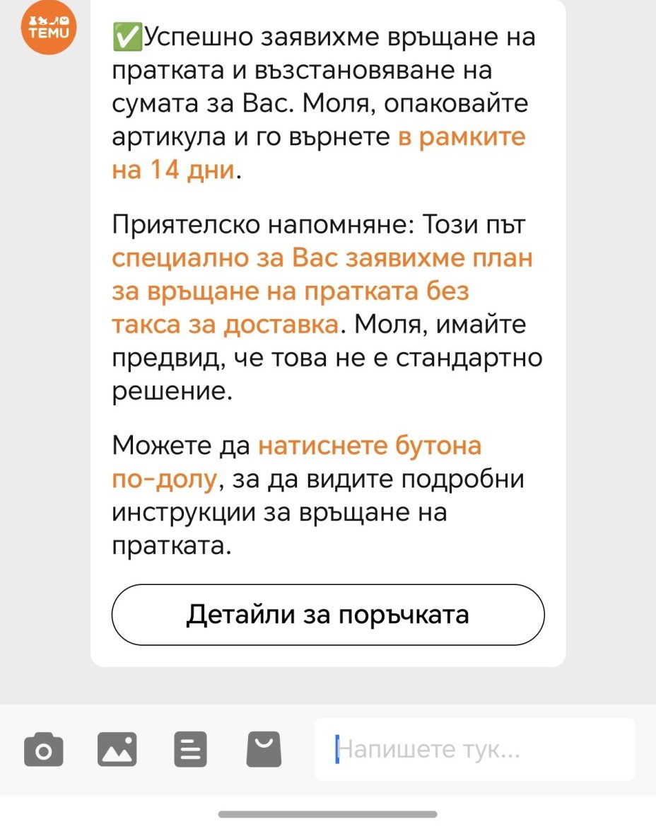 Интересно съобщение ми написа бота при заявка за връщане!