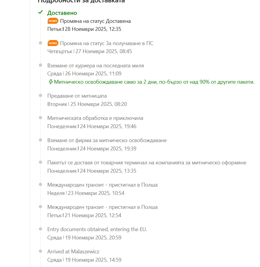 Питах за статуси на хора, които вече са си получили пратката.