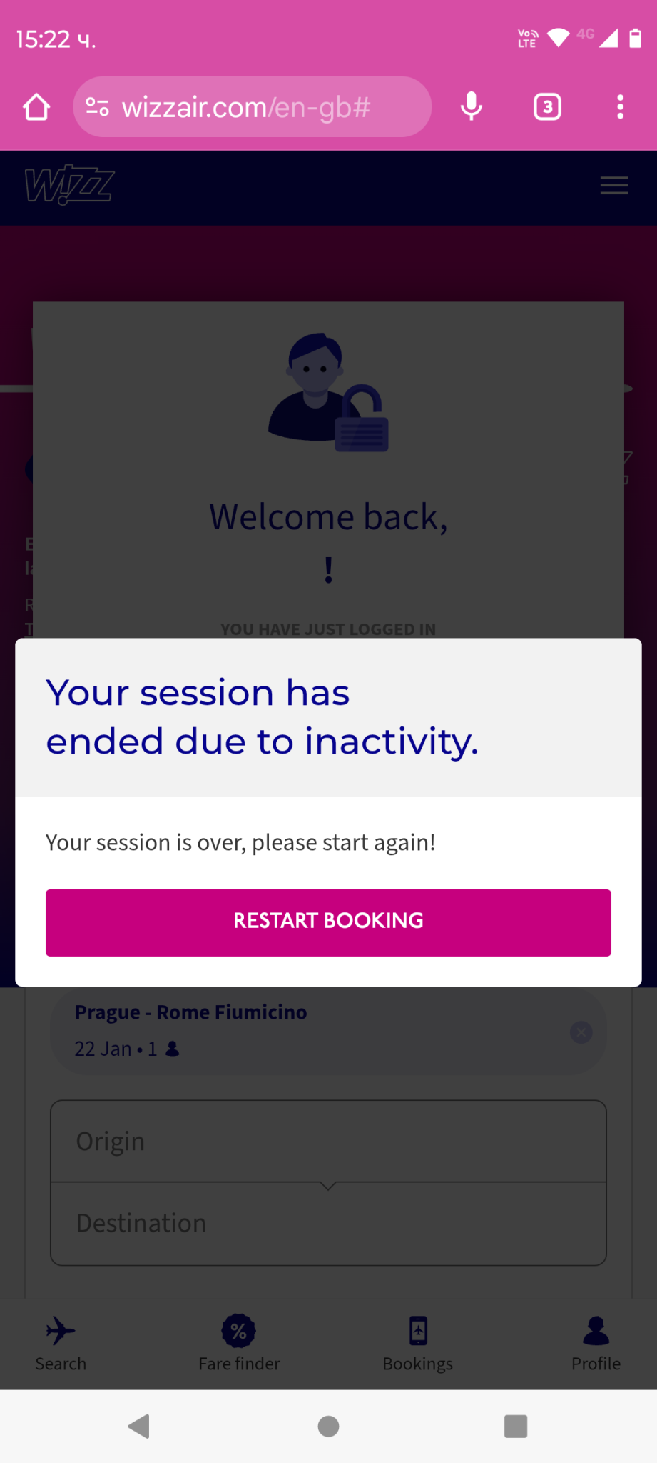 Трябва да чекирам за утрешен полет, но като вляза в профила си в уиз и ми показва това