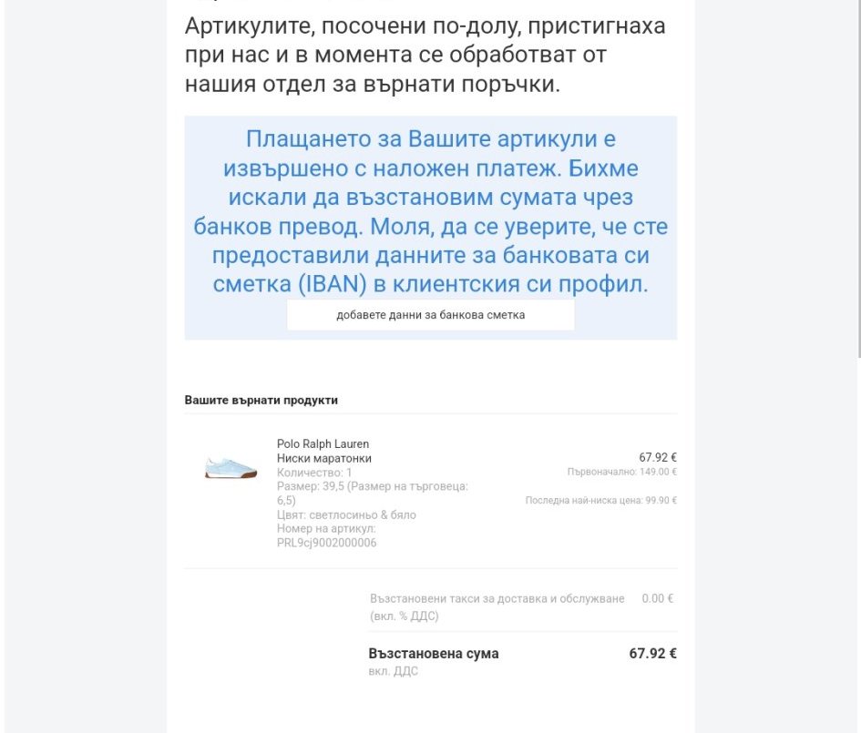 Инак не мога да разбера тая твоя аматьорска постъпка. Казва се, че си поръчала за него маратонки, но тея простаци са пратили рокля, която случайно е твой размер. Ама вече е късно, понеже с неговата карта трябва да се плащат мъжките поръчки. Wink