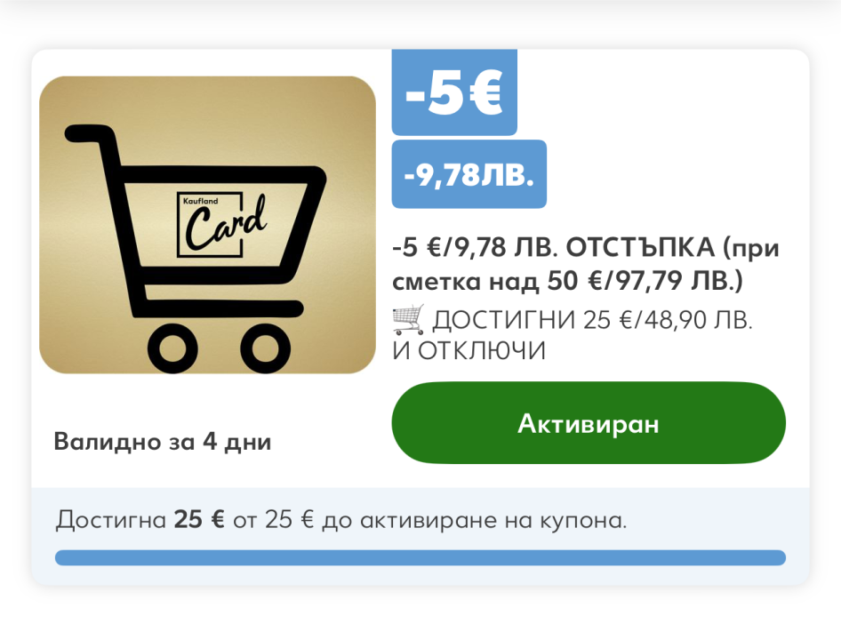 Кодът намалява стойността на кошницата с 5 € Минималната стойност на поръчката трябва да е 70 € Кодът важи в рамките на 30 дни. Можете да го използвате само веднъж. Кодът важи само за продукти на редовна цена.
