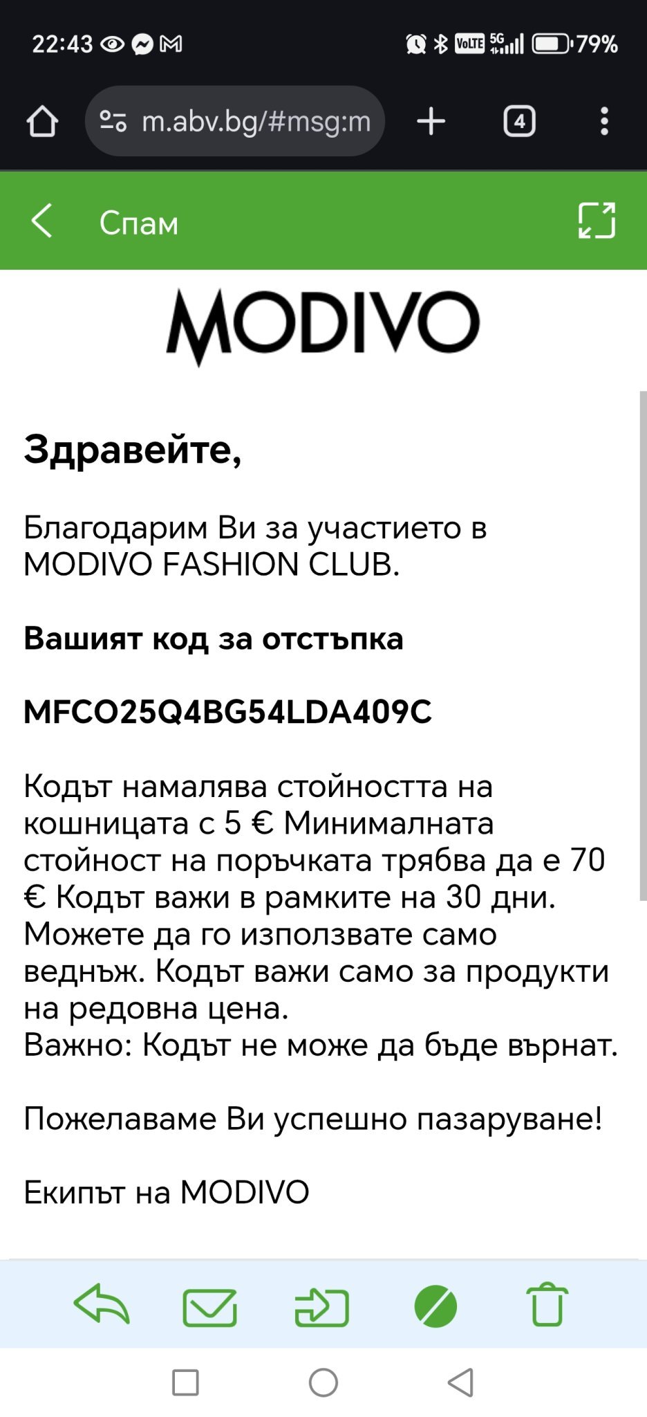 Благодарим Ви за участието в MODIVO FASHION CLUB.