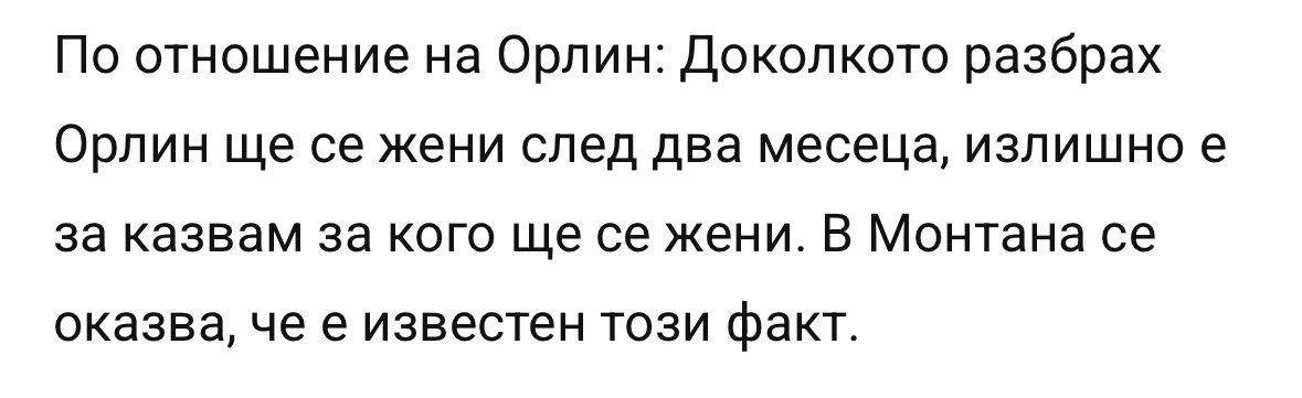 Някой по-назад в темите беше споменал, че знае семейството на Орлин и стягали сватбата, ама булката не се знаело коя е.  Тогава ми се стори фейк. Да не е обаче вярно да се жени за Наталка? И тя в сторитата си намеква за някаква сватба.