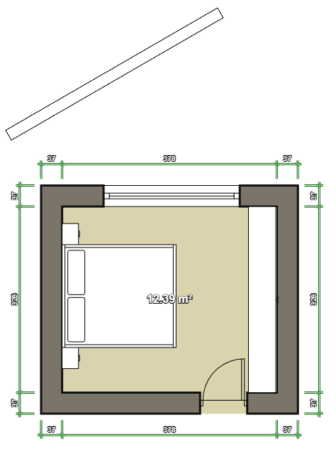 Нещо на някой му бяха математиката. Стаята реално е широка 254. 254-180=74. Не стига и за едно нощно шкафче!