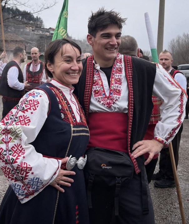 Като се има предвид, че репортажът е по конкурентна телевизия, доста пъти влиза в кадър Калин. Кефи се на традицията, определено. И пее с пълно гърло 😄.