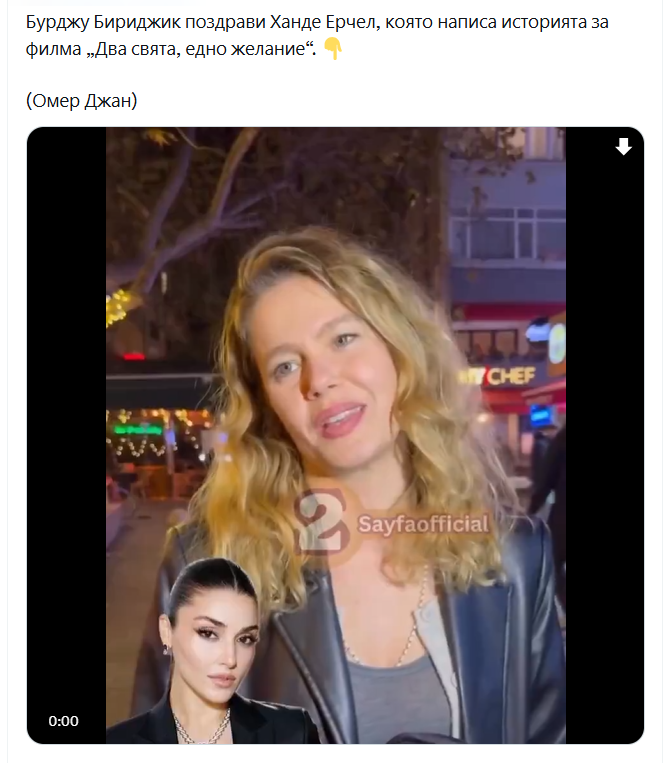Бурджу Бириджик говори за Ханде Ерчел в интервю: