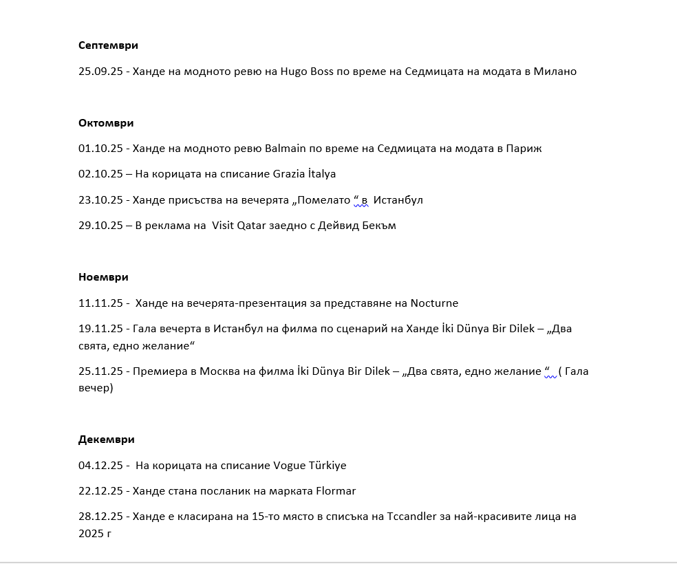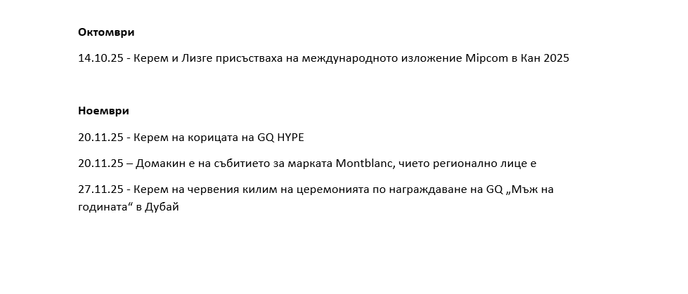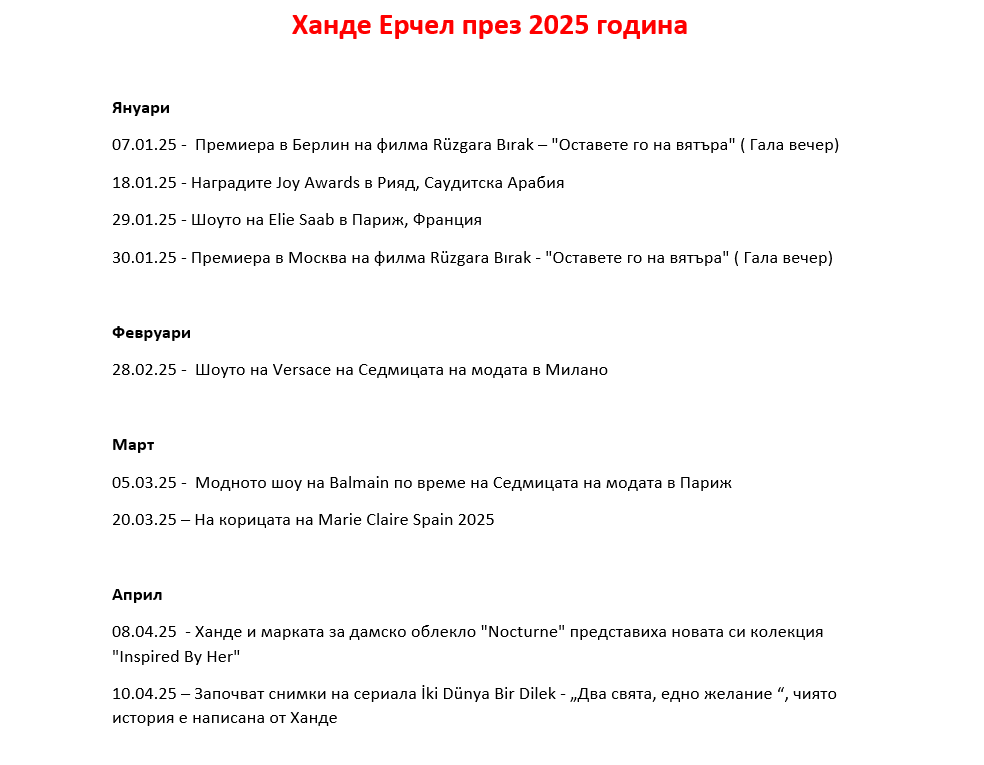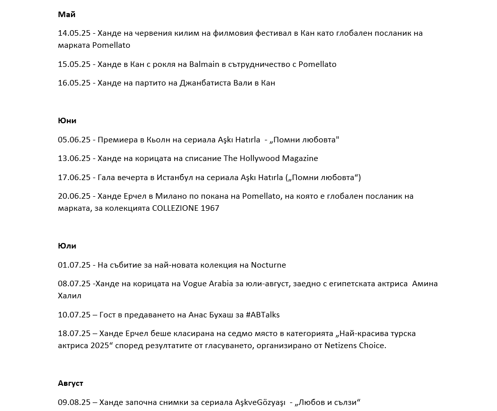 В първият момент не се сетих за кой Онур говориш, но после се "включих"... Ако това е човека до нея в момента поне това, че е актриса няма да е недостатък...Не че няма да я обвинят, че си търси протекции. Колкото и да я плюят и да омаловажават актьорската ѝ игра споделения от Миси работен график на Ханде за 2025 г. показва, че тя не е само търсено рекламно лице , но и търсен актьор.