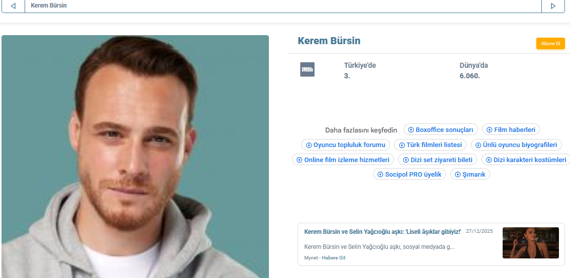 18.07.25 - Керем Бюрсин беше класиран на пето място в категорията „Най-красивият турски актьор 2025“ според резултатите от гласуването, организирано от Netizens Choice