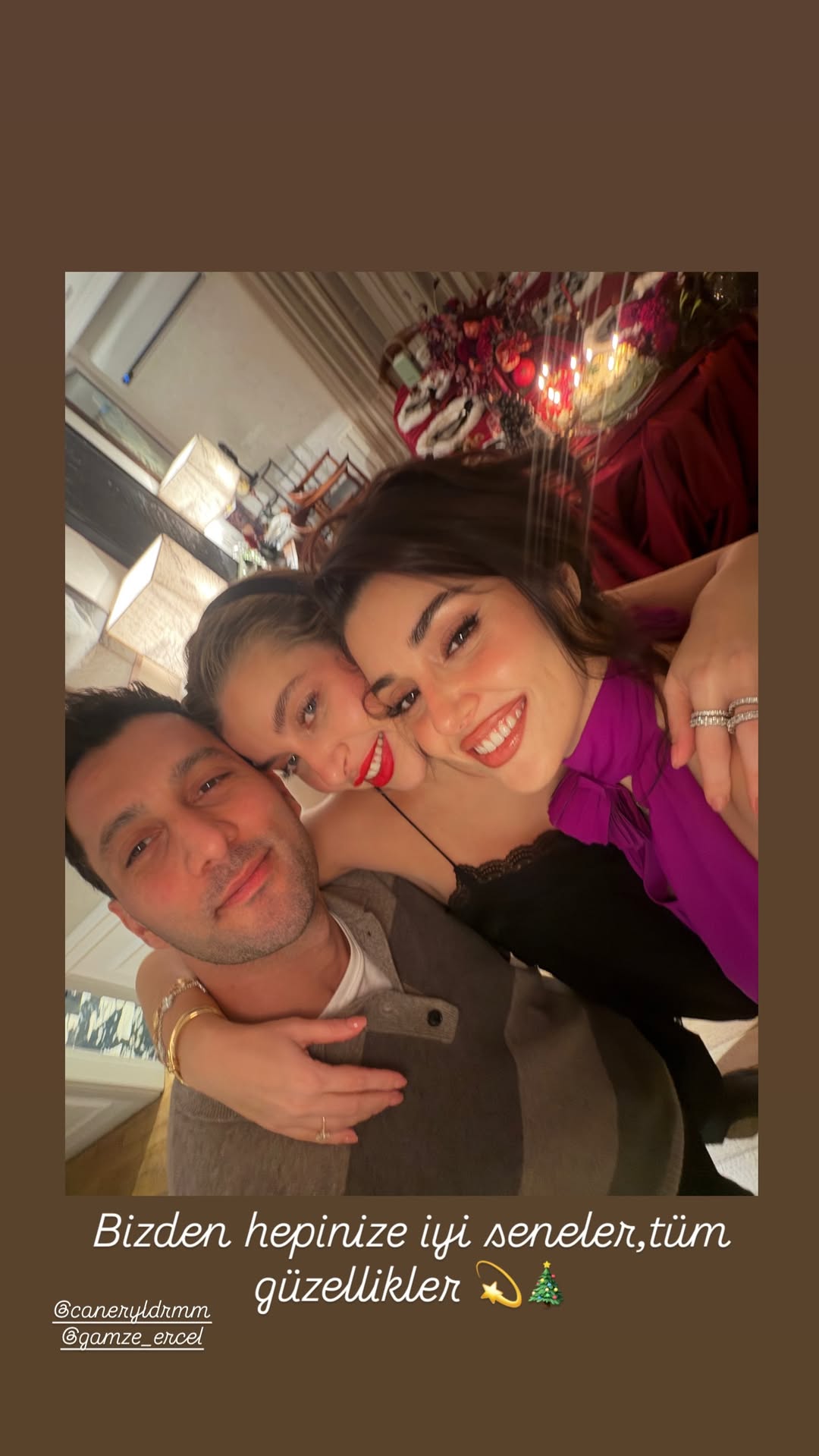 Краят на нещо е началото на очаквано с безпокойство, тревога, напрежение, но и бленувано с вълнение, трепет, надежда нещо ново. Да изпратим с уважение към случилото се и преживяното от нас отиваща си вече 2025 и да посрещнем с радост и надежда Новата 2026 година! Здраве, късмет и много любов желая на вас и  вашите семейства и приятели през Новата 2026 година! На Ханде и Керем желая преди всичко здраве, осъществяване на творчески, професионални и лични планови и много, много любов и щастие!