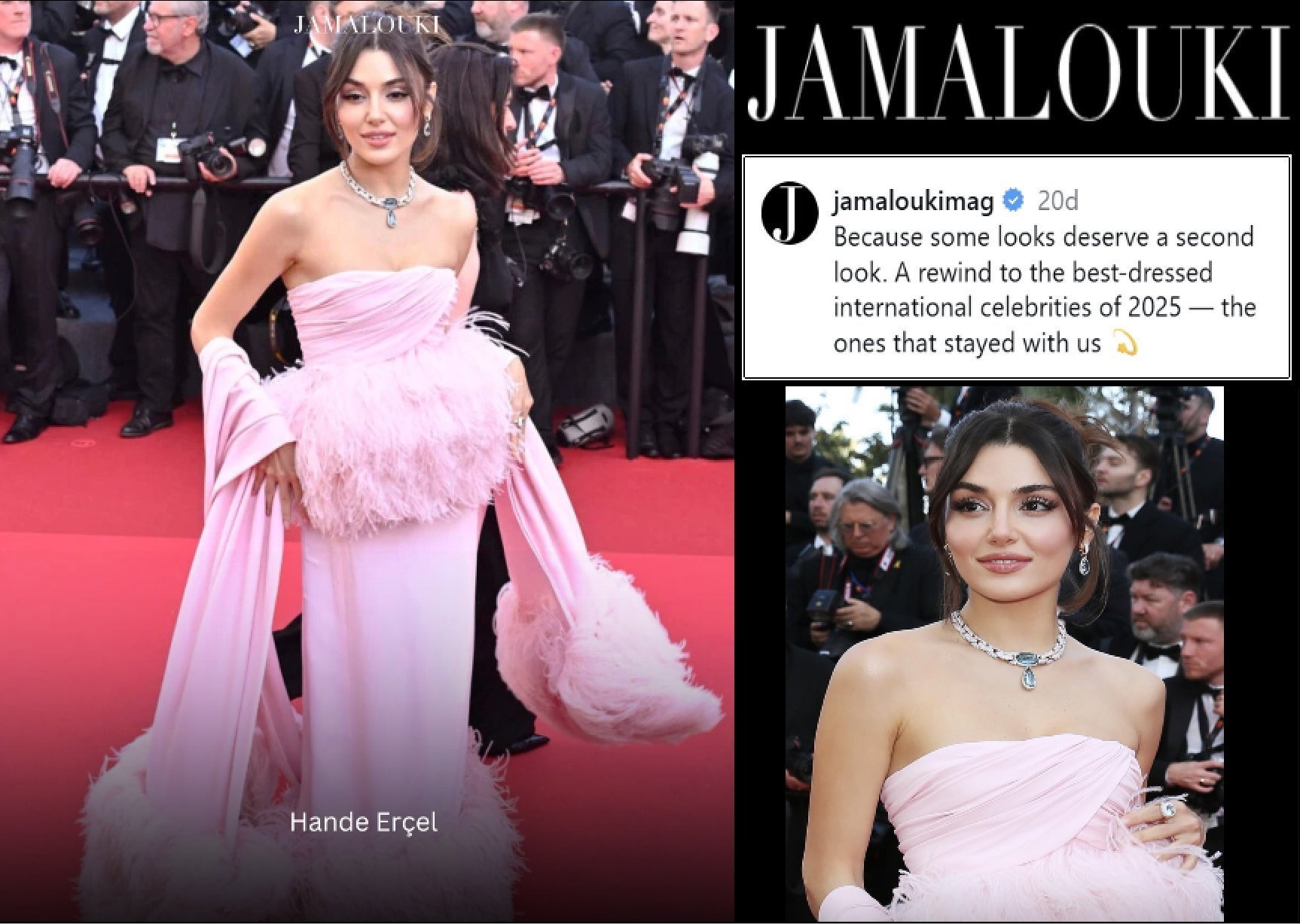 Jamalouki Mag, дигитална медийна платформа, която произвежда съдържание за мода, красота и култура на знаменитости, определи най-добре облечените международни знаменитости за 2025 г., а Ханде Ерчел, в роклята си Giambattista Valli, беше сред най-добре облечените модни икони.