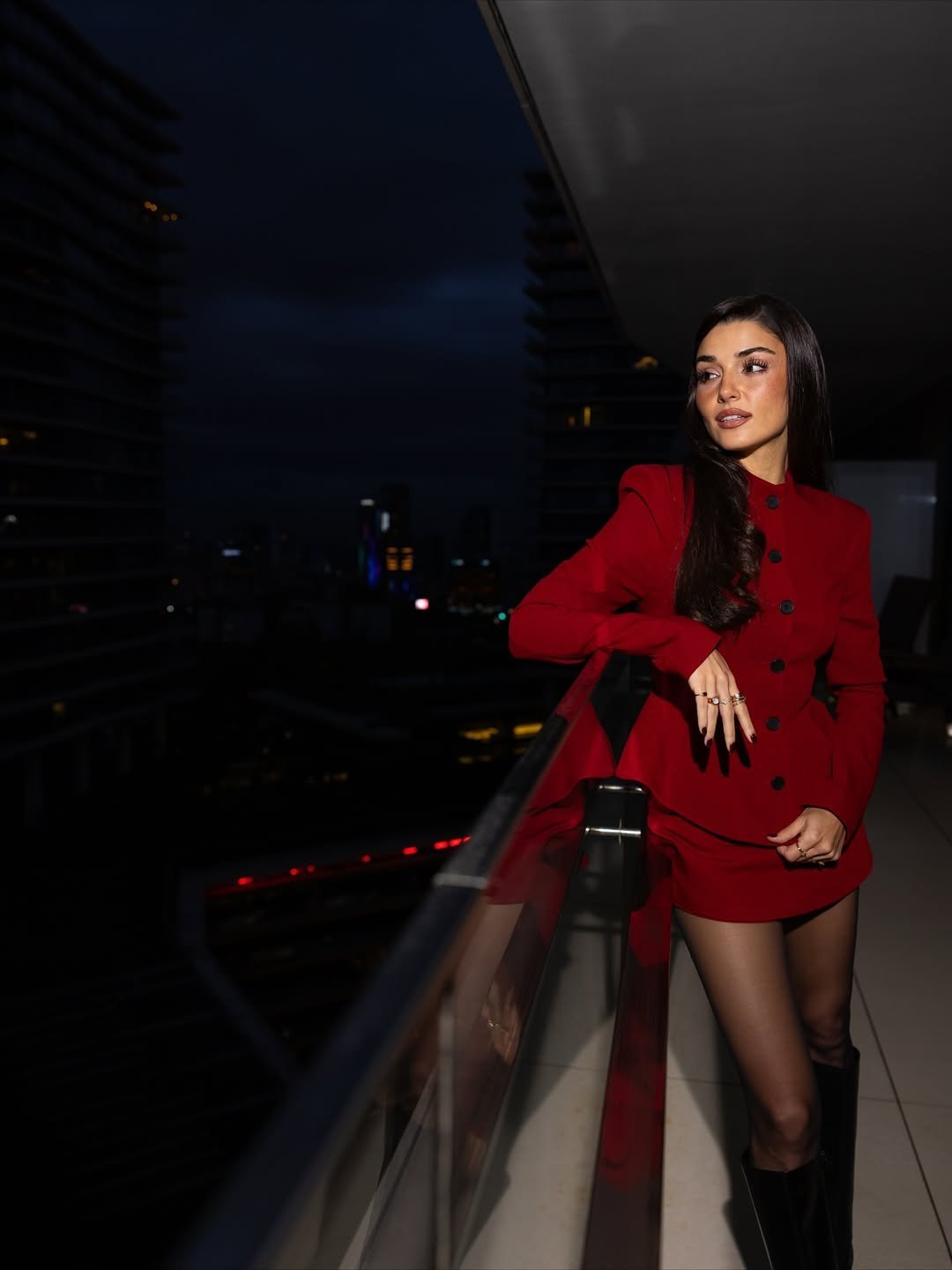 Турската актриса Ханде Ерчел сподели своя снимка в ефектен тоалет в Instagram, като написа: „Обичам най-горещия костюм с пола за този сезон.“ Ханде избра модерен бордо костюм с пола от раирана материя, съчетан с широко деколте със златни копчета и прозрачна черна муселинова блуза, вдъхновена от бельо. Вталената пола с предна цепка и колан от същия плат допълваха елегантно визията, а кожените ръкавици добавиха модерен щрих, който е ключова тенденция за зима 2026.