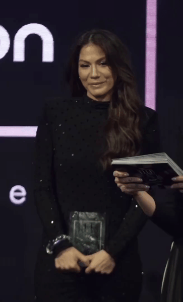 Водеща: - Всичко наред ли е? „Добре съм, развълнувана съм, щастлива съм.“ А ти как си? Наистина сияеш. Понеже е вечер на наградите за стил, те питам специално – какво носиш и как се подготви?