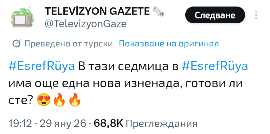 Не искам да опонирам само си казвам личното мнение. Втори сезон на "Ешреф Рюя" е много по добър и интересен от началото , където и на мен ми е било скучно понякога. В продължението има , осъзнатост , признание в любов и на чувства.  Развитие,  дълбочина , мисъл и логика и всичко си върви по план и естествено.  Лека - полека нещата се подреждат и разкриват. Нормално е да е така , защото това ще е Финален Сезон на сериала. Не е нужно да се разтяга и продължава излишно и да се съсипва историята само заради печалби. Развръзката те първа предстои. Демет и Чаатай имат доста повече общи сцени и екранно време. Друг е въпроса че рядко има романтика и ако има те я съсипват с ненужно намесване на някои от образите.