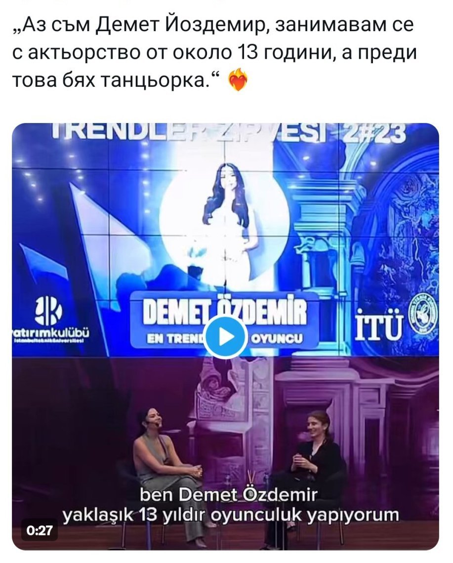 „Ти си Демет Йоздемир, но в постовете си винаги споделяш най-лошите си снимки, а в сторитата – най-хубавите. Точно затова те обожавам, скъпа.“
