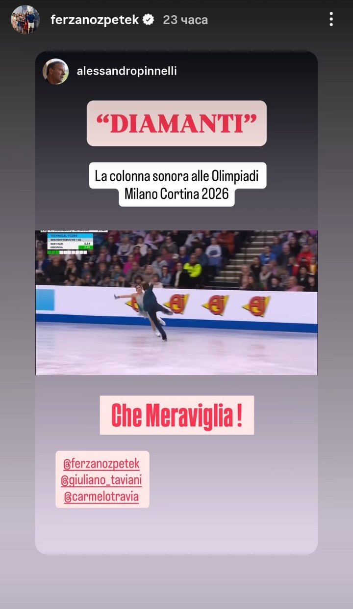 Което ме подсеща, че композицията на италианската двойка по фигурно пързаляне на зимните Олимпийски игри е по музиката от филма му "Диаманти" Hands Clap