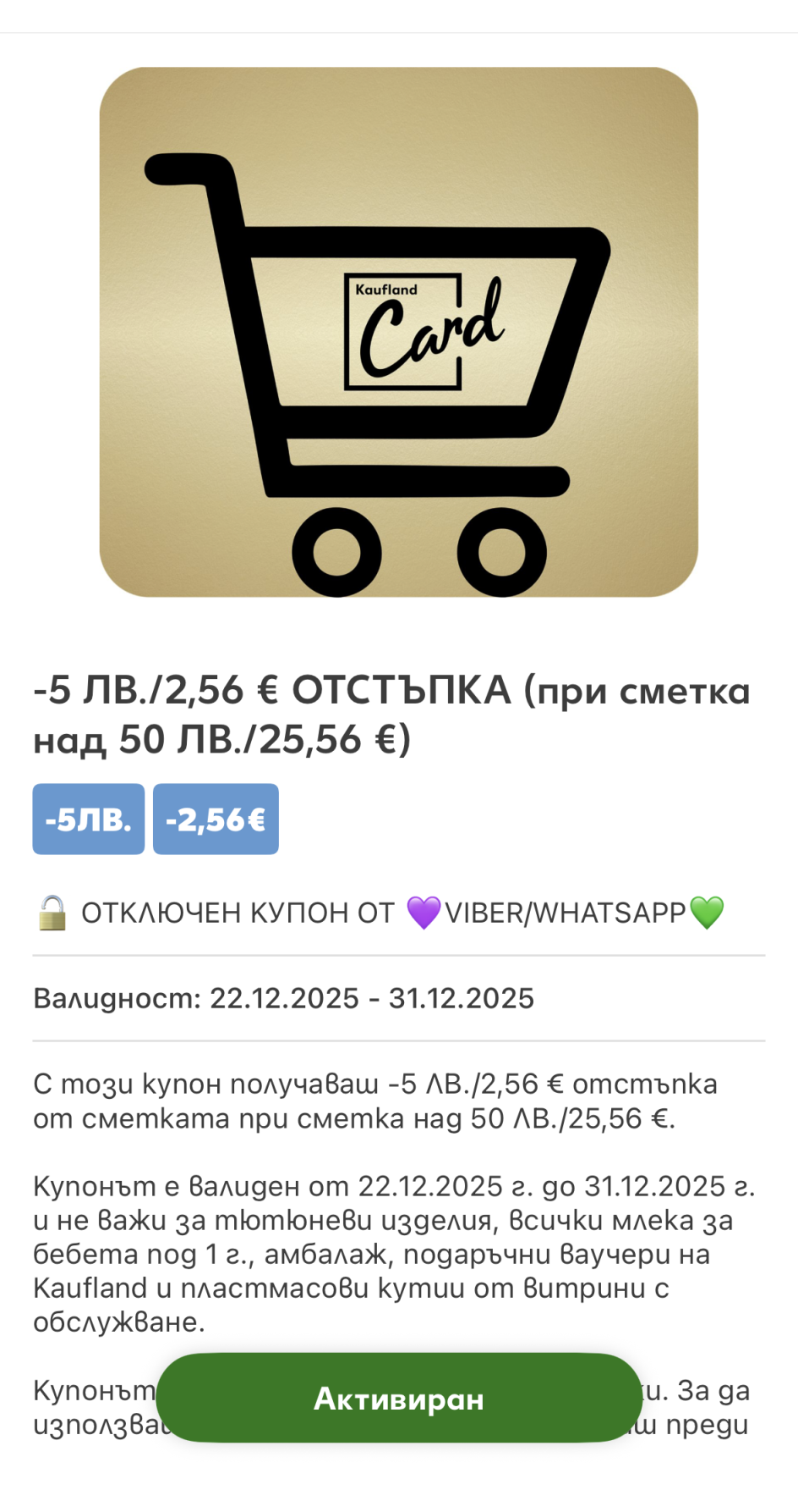 Подарявам купон за отстъпка от 5лв при покупка над 50лв, валиден до 31.12.2025г
