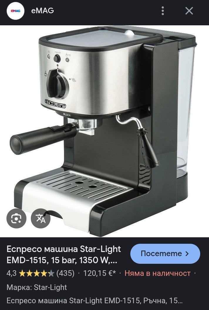 На външен вид и тя много не ми харесваше, но кафето беше божествено. И нея вече май не я продават, а автомати не искам аз.