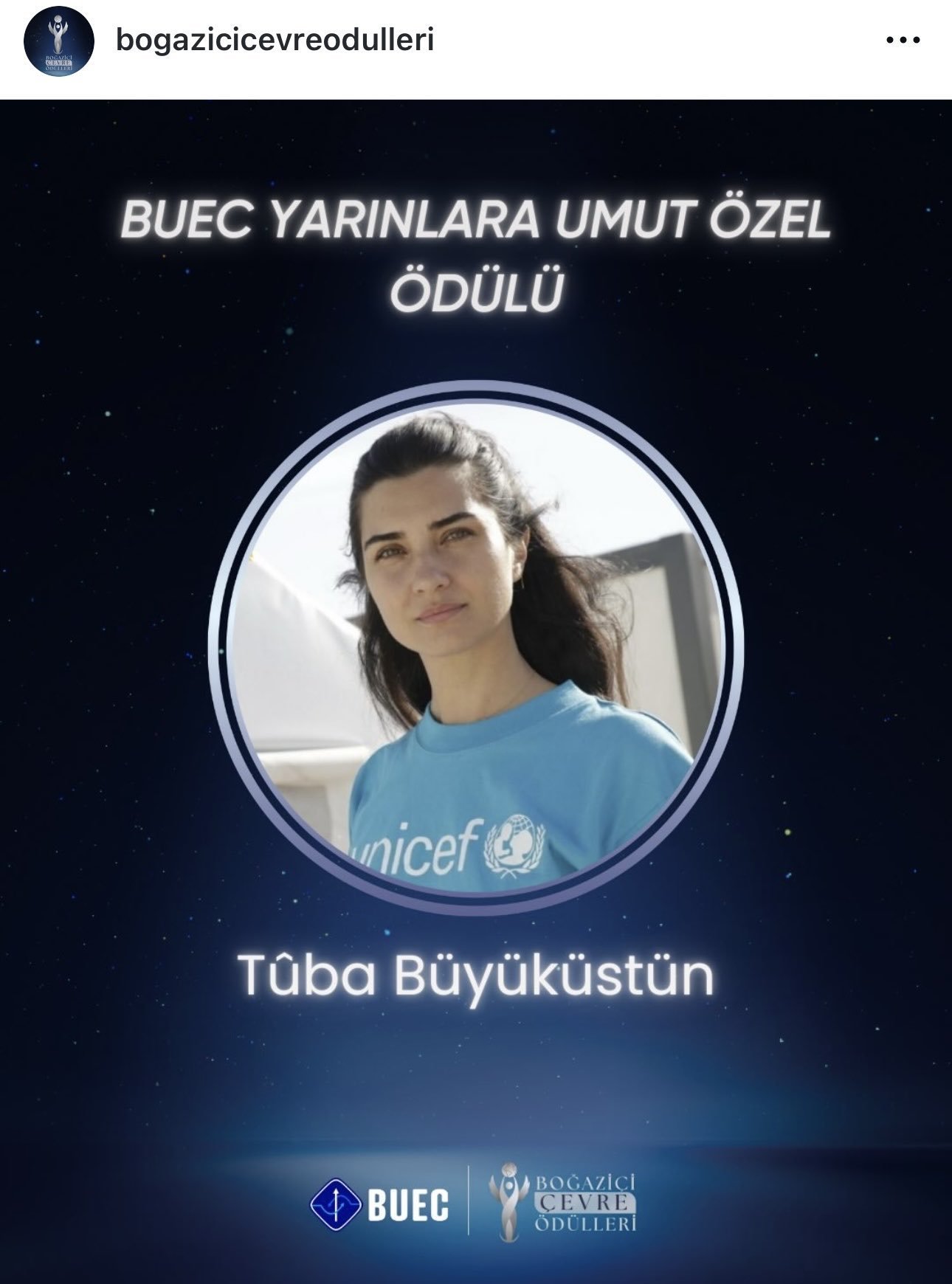 От Instagram профила на Boğaziçi Çevre Ödülleri #TubaBüyüküstün