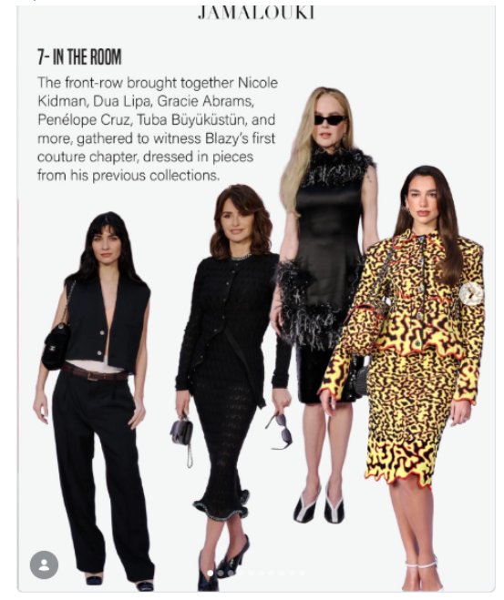 Компанията наистина е звездна! Даже говорят, че на дефилето е присъствала Анна Уинтър. Тя е главен редактор на американското списание „Вог“, която позиция заема от 1988 до 2025 година. Със своята късо подстригана коса и слънчевите си очила, Уинтур се е превърнала в институция в света на модата. Със своя строг поглед към модните тенденции, тя е успяла да си спечели прозвището „Ядрената Уинтър“. Прототип на дамата от „Дяволът носи Прада“