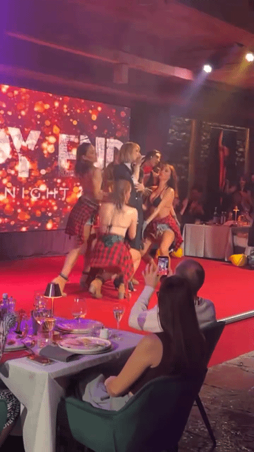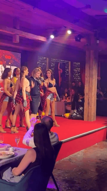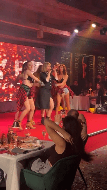 А тук се вижда, че и нашия е станал до масата и танцува.