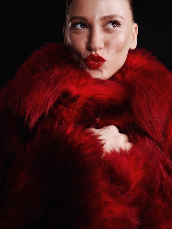 Освен, че цялата грее в червено, щастието е изписано на лицето и! Heart