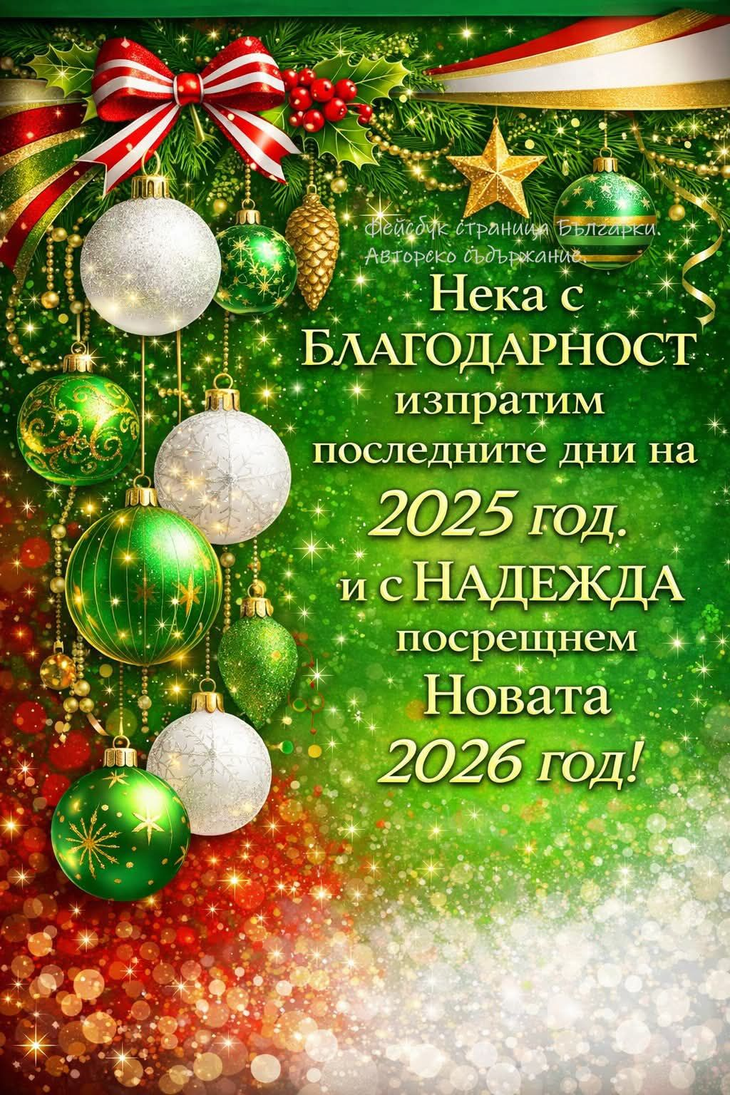 Да изпратим старата 2025 година и да посрещнем Новата 2026 година с Вяра, Надежда и Любов!