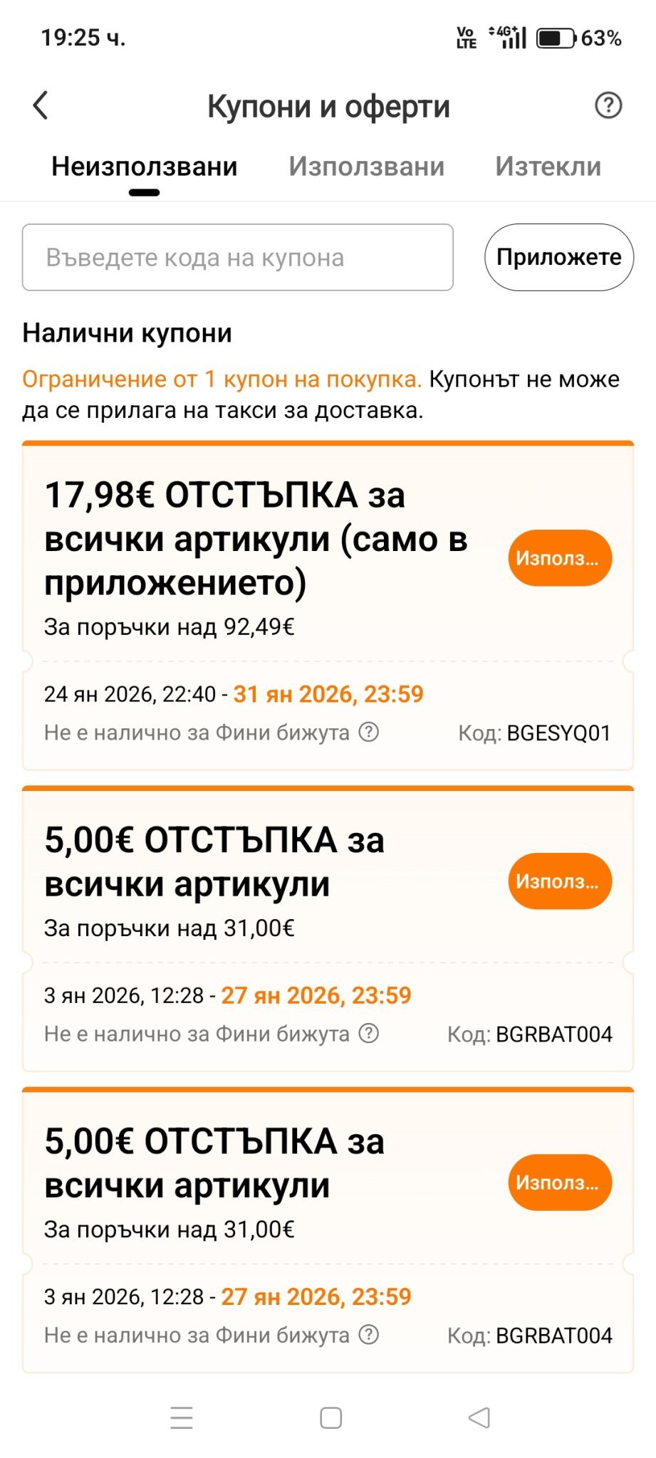 Аз да си призная как извиках купони вчера и днес- реших да си поискам и  писах в чата - може ли купон за отстъпка.. Дава ми на случаен принцип. И така 5-6 пъти, докато не ми даде отстъпка 5 евро от 15.. Но става само на единия акаунт, на другия не иска да ми даде. 🙂