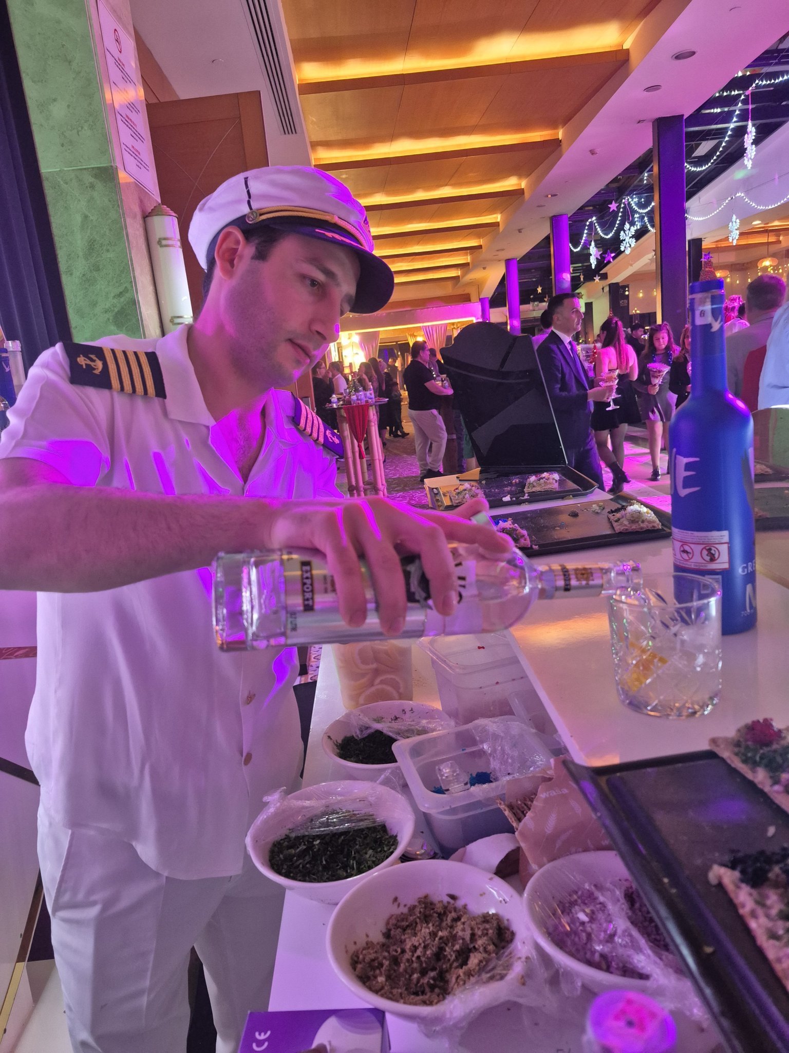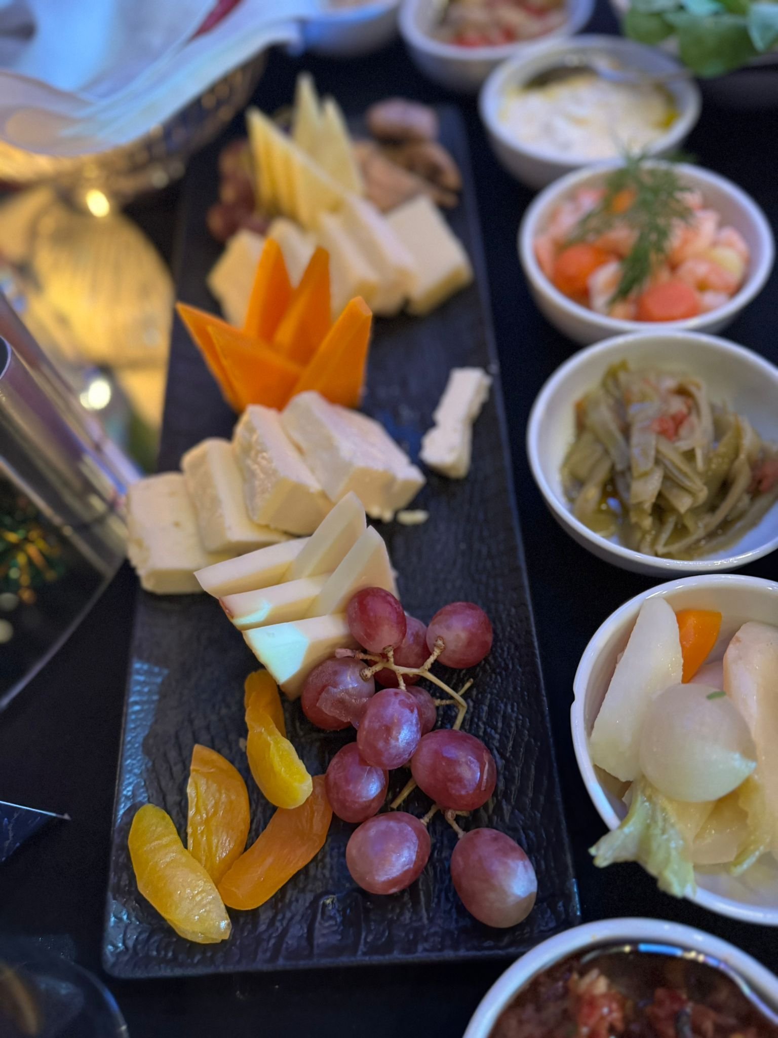 Храната разнообразна, алкохол вносен и качествен. Коктейли, ядки, плодове...