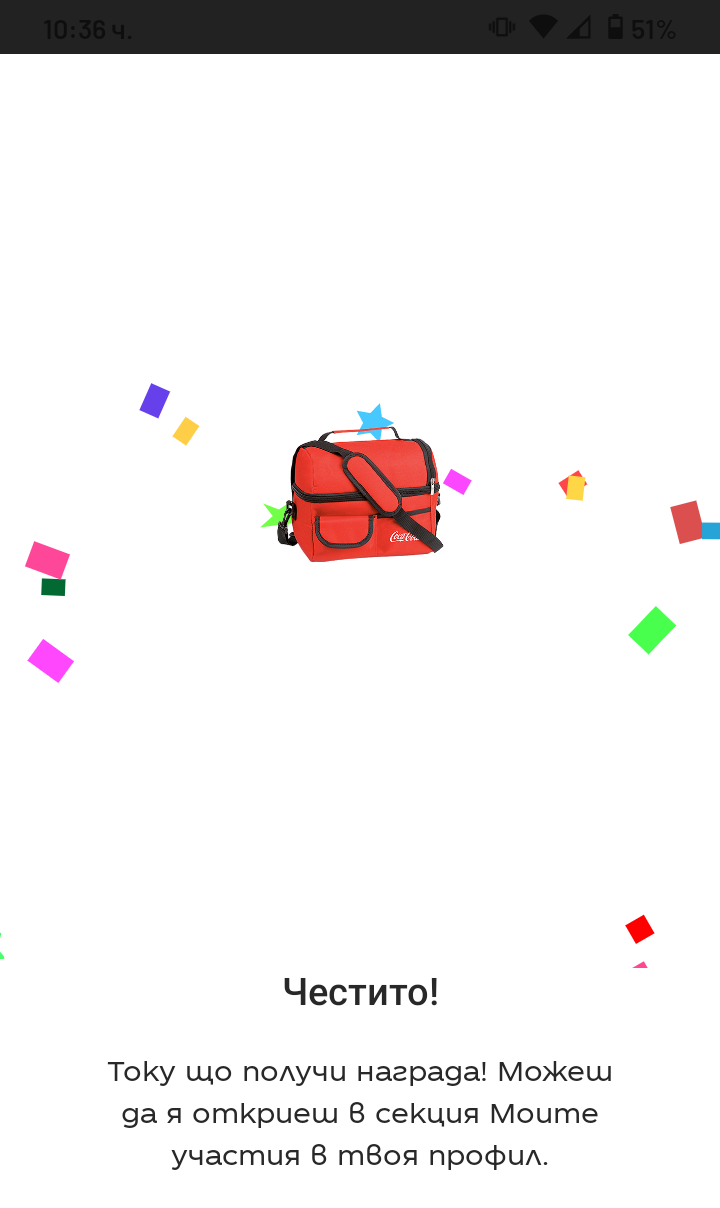 Вчера питахме и Милка, защото някой беше писал, че кроасани не може в другата игра - може и в двете игри, ако са Милка кроасан, но посъветваха първо да я играем за одеяло, защото ако спечилим там ще ни искат КБ и след това няма как да си получим другата награда, ако евентуално ни изтеглят. Не било редно да даваме копие .... малко двузначно, но не съм спечелила одеяло, та ... Simple Smile