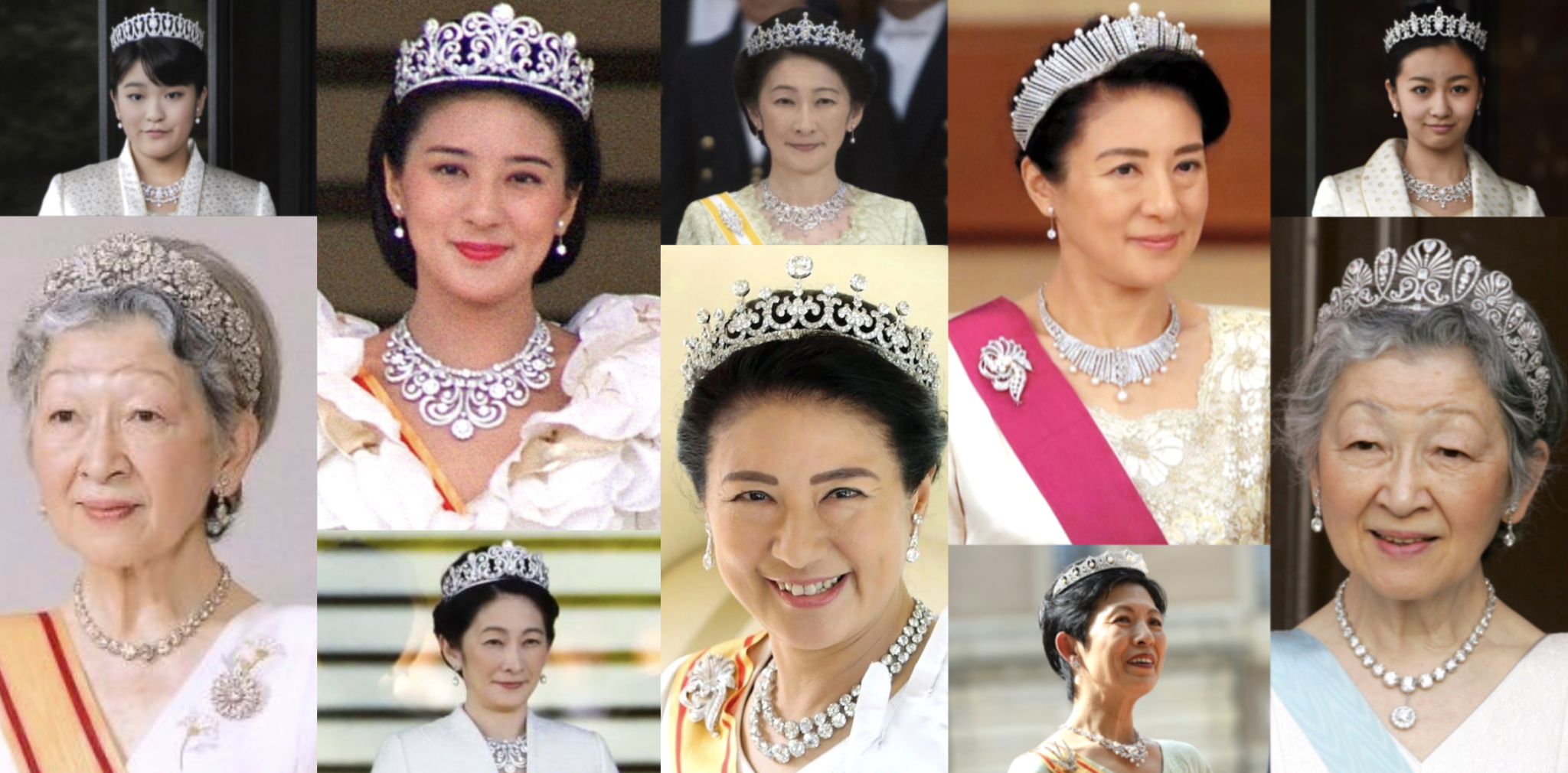 Техните нямат цветни камъни. Официалните им бижута са с диаманти и перли, инкрустирани в платина или бяло злато.