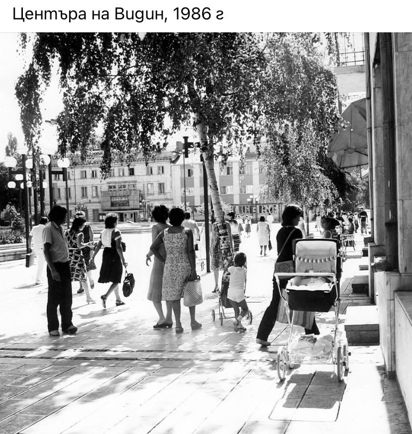 Не виждам добре, но ако е 1986, на площада трябва да има фонтани, а сякаш няма. Откриха ги официално с посещение на партийния комитет. Не бяха съвсем готови и сложиха макети от стиропор, боядисани като истински камъни. Joy и надписи "не сядайте. Камъкът се чупи".