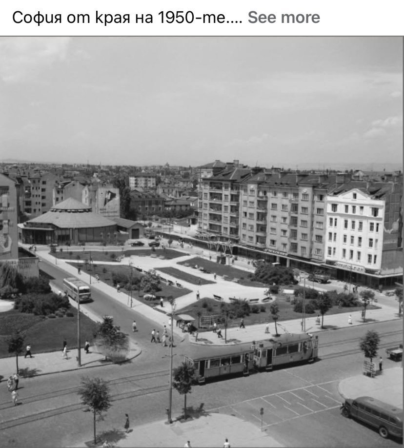 Разгледах стрийт вю. Сградата с петолъчката сега е обменно бюро Карол. Според мен всички сгради на снимката са същите и сега. Само ул. Позитано е била огромна, като булевард тогава. Сега е много малка уличка.