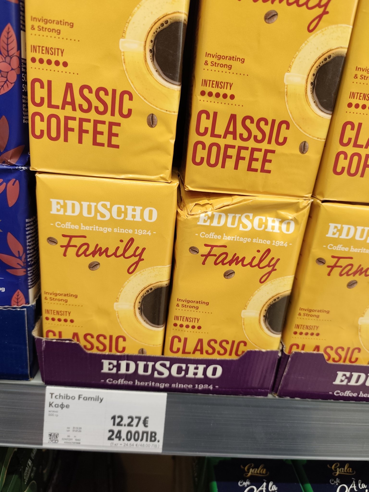Докато беше Чибо Фемили често го купувах и ми харесваше, но в един момент пуснаха още 1или2 вида, които бяха в еднакви опаковка само по един надпис се различаваха, а бяха гадни и често ги бърках и взимах от гадното. Приключих с него след като ми се паднаха едно след друго 3 лоши пакета, кафето беше супер тъмно изгоряло и едва течеше на машината, абе ужасно. Малко след това му смениха името и стана Едушо, но така и не се навих да го пробвам.