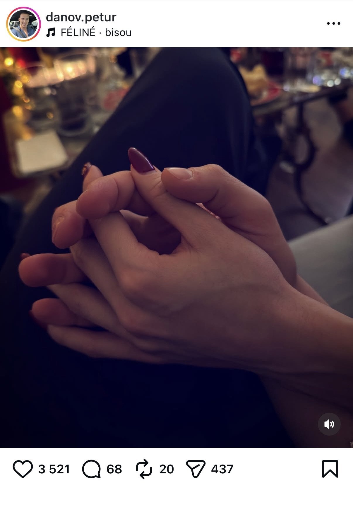 Петър сподели на пост снимка с приятелката си. Чудя се дали не е Галена. Заради маникюра .. но пък този месец масово си правят червени нокти.