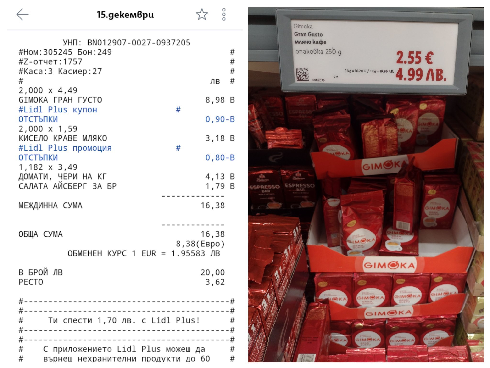 В Лидл "Студентски град" пазаруването е спокойно и  безпроблемно. На касата момчето пита всеки в каква валута ще плаща и върна еврово ресто. Платихме кеш в лева и няма никаква драма. На примависта не забелязах нещо с отклоняваща се по-висока цена в евро от обичайните за домакинството ни продукти....за сега Simple Smile!