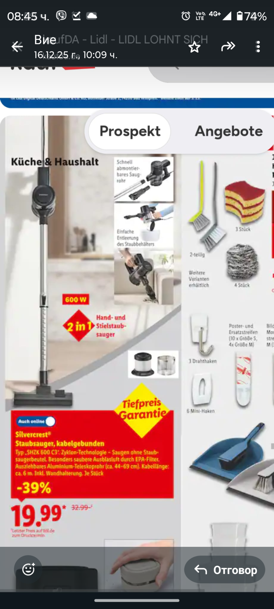 Редактирам: преди 2 седмици взехме тази прахосмукачка от Германия. Разликата в цената е притеснителна.