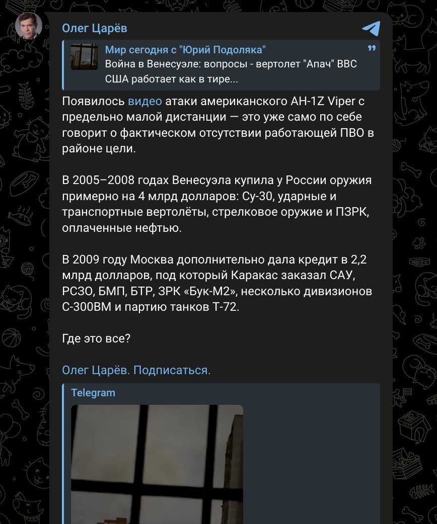 Ах, сега чета обяснението. ''Специалната военна операция'' на Тръмп е била с цел да арестува Мадуро. Американците, които са щели да го отвлекат с жена му, са имали нужда от военна защита. Затова са валяли американски бомби и е бил атакуван и мавзолея на Чавес. Обяснението идва от републикански сенатор, който бил разговарял с Рубио. Според този сенатор Тръмп е в пълномощията си да отвлича държавния глава на друга държава и военните в този случай с право се намесват да охраняват похитителите.