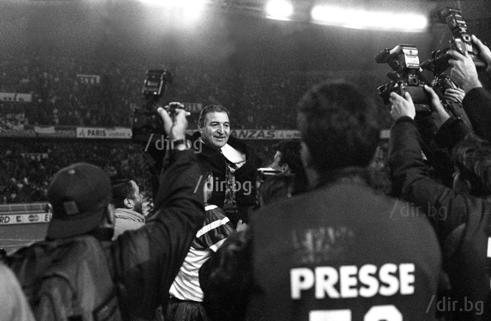 17 ноември 1993 г. - Пената е понесен на ръце пред фотообективите след победата :
