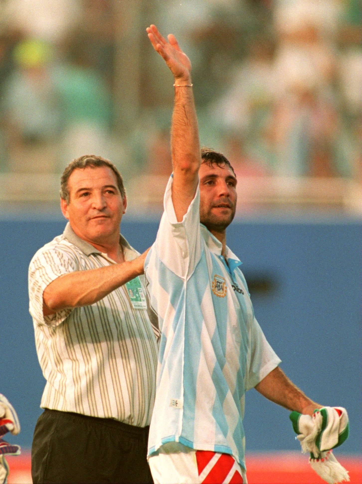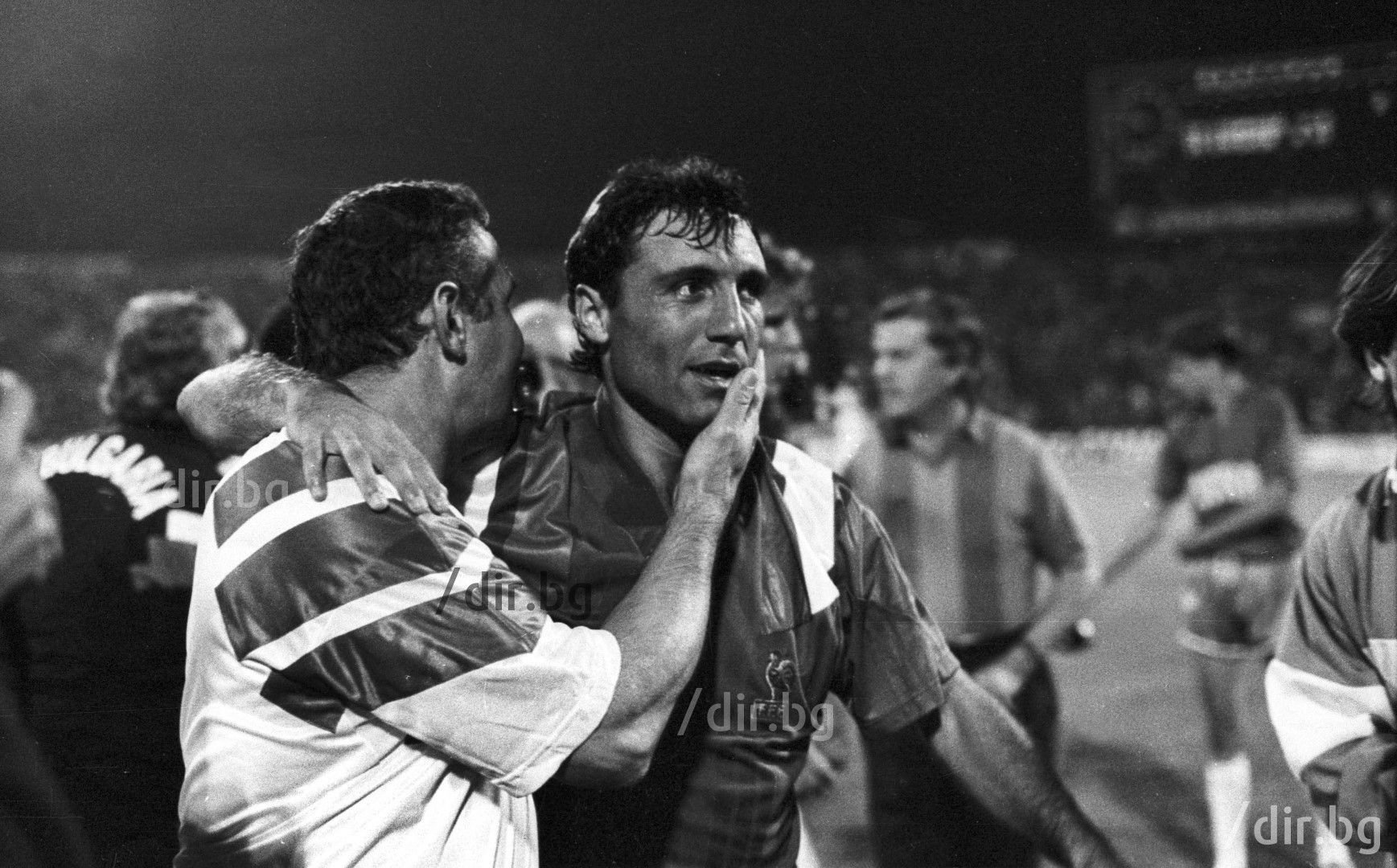 Вече е треньор на националния отбор, но прегръдката и целувката с Ицо се повтарят и там - в този случай след победа над Франция в квалификациите за САЩ 1994 :